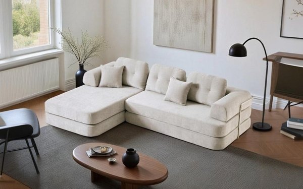 2026 trending vacuum compressed L shaped sofa bed designed for modern urban interiors, crafted with flexible corner configuration that enhances space utilization and stylish appeal, vacuum sealed packaging ensures convenient logistics while maintaining resilient cushioning and structural durability.