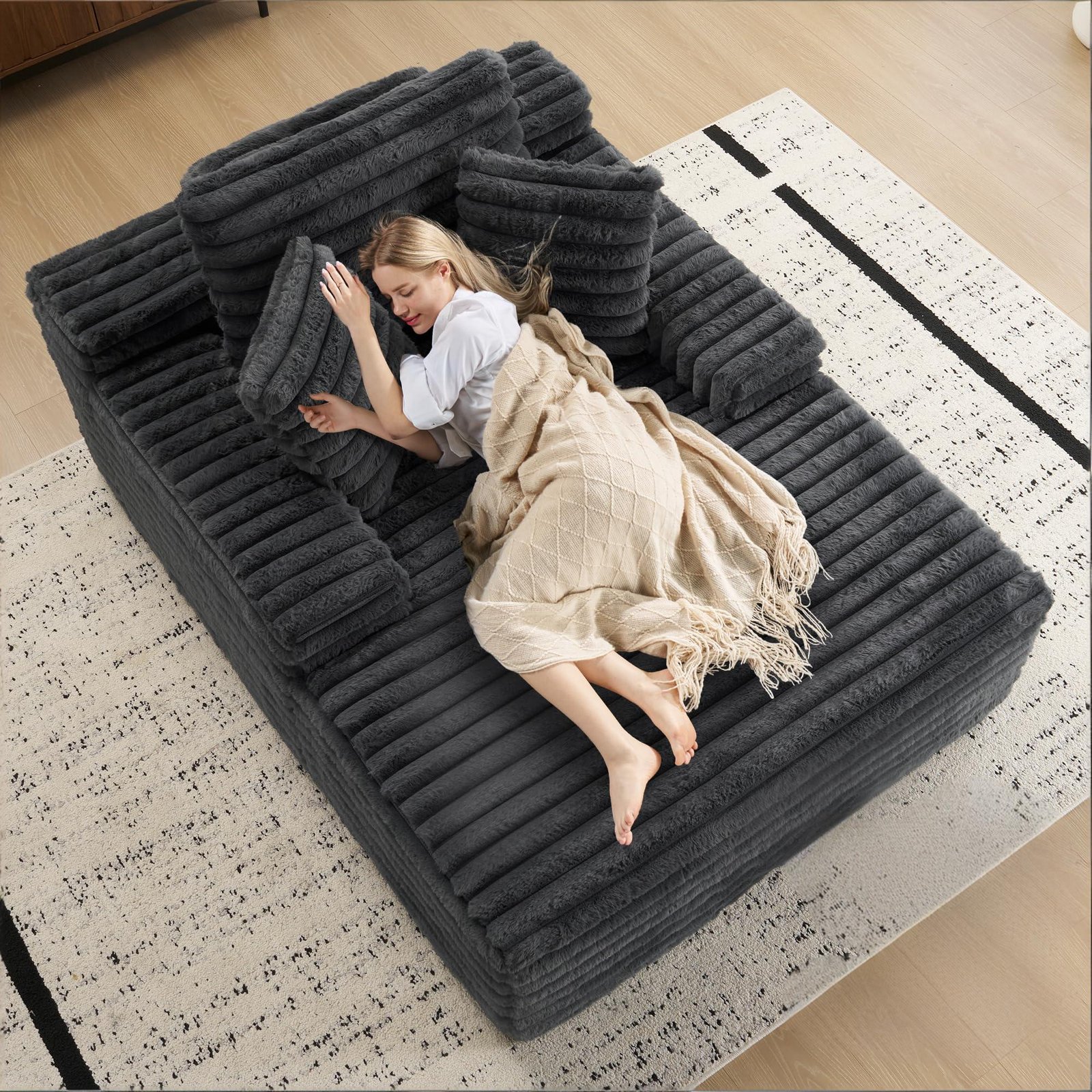 Teddy Sectional Floor Sofa Bed lorem comfort designed for relaxed modern living spaces, crafted with ultra soft teddy fabric texture that enhances warmth and visual appeal, modular structure allows flexible arrangement to suit apartments dormitories studios or family rooms